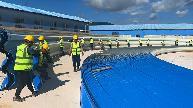 項目完工后,建設單位與業(yè)主單位聯(lián)合進行驗收,各項指標符合合同要求,施工結果獲得認可。拱形屋蓋安裝嚴密、排水順暢、結構牢固,適應華新水泥料棚嚴苛的工業(yè)使用環(huán)境。