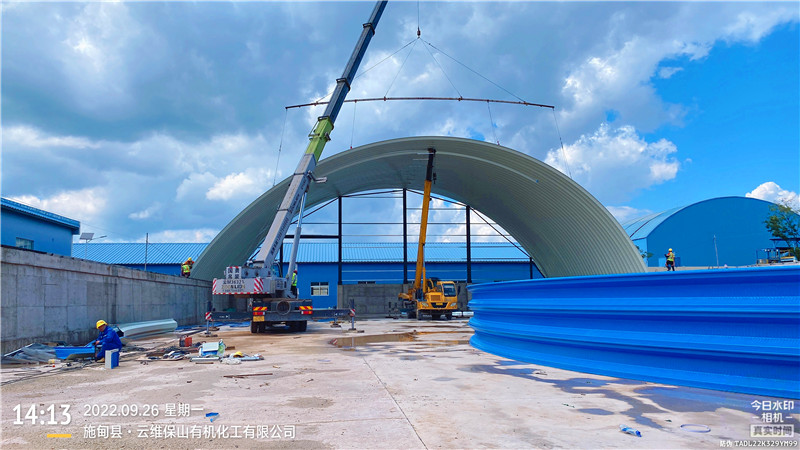 云南保山華新水泥料棚拱形屋頂工程