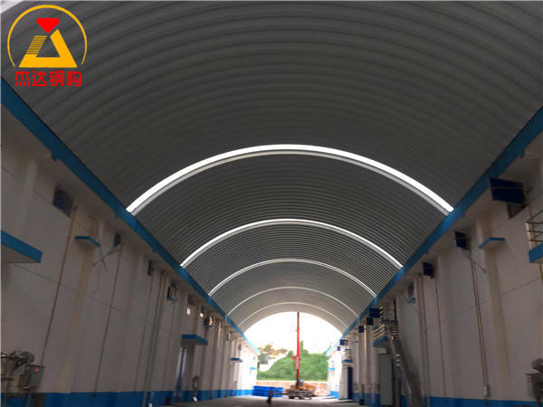 結(jié)構(gòu)形式采用拱形屋頂單元瓦,中間設(shè)計中空式采光帶,有效提升采光效果。