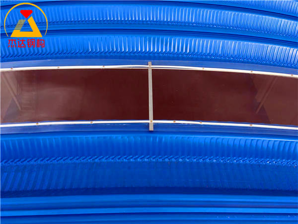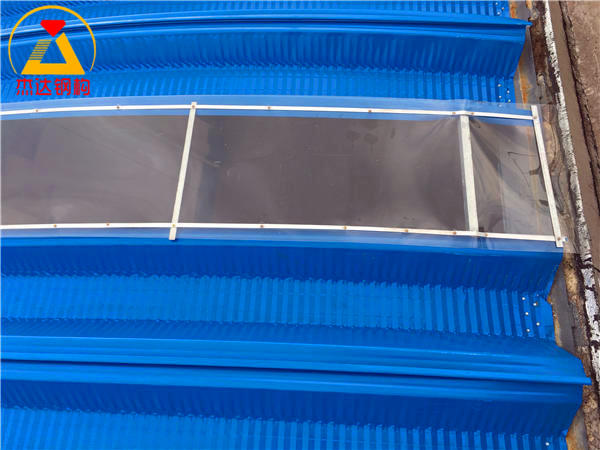 PC采光帶安裝完畢后的倉間罩棚效果,采光性能良好,結(jié)構(gòu)美觀。