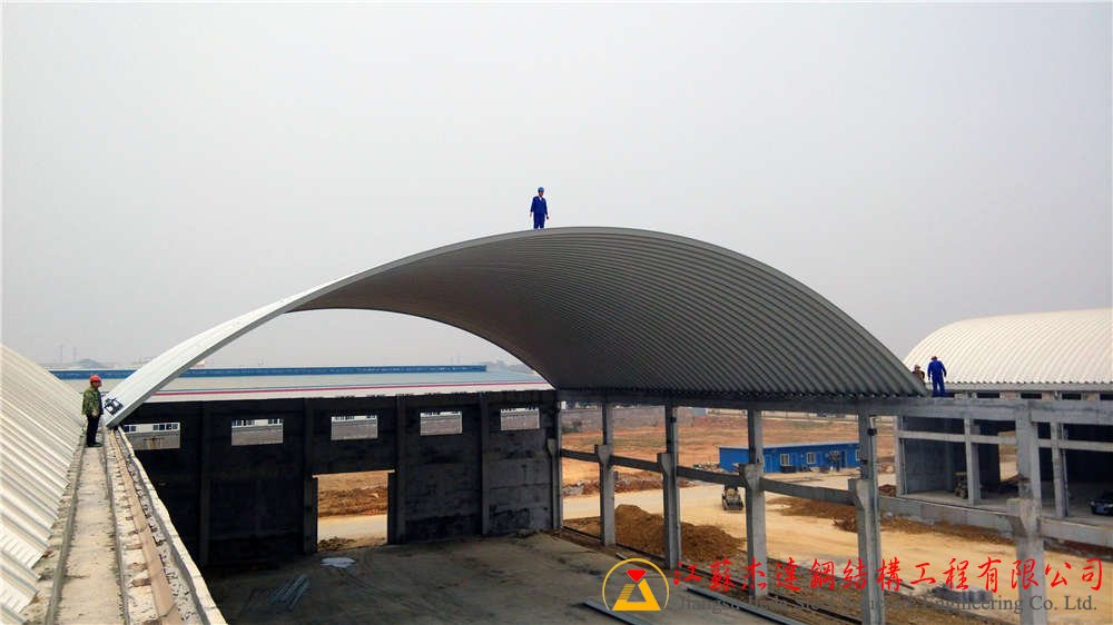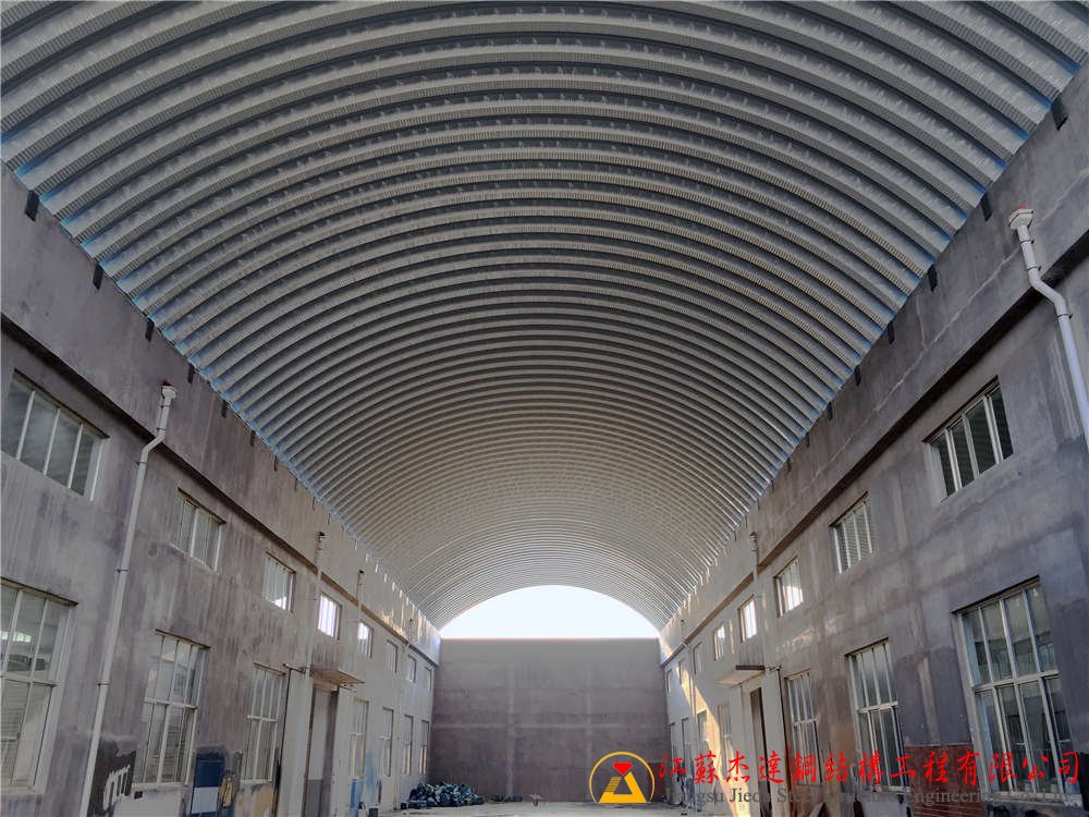 拱形屋頂在工業(yè)建筑中較為常見,尤其適用于連接兩棟磚混結(jié)構(gòu)廠房之間的過道部分,既能實(shí)現(xiàn)空間覆蓋,也方便施工和維護(hù)。