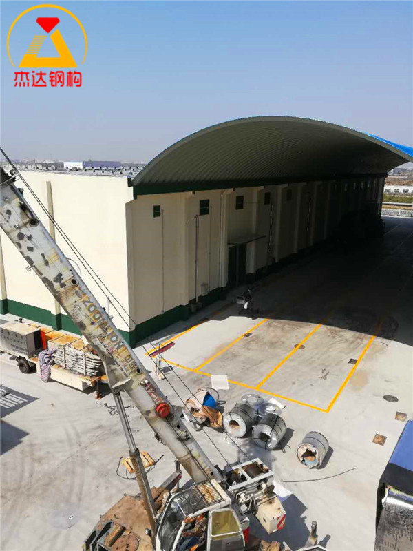 本項(xiàng)目為山東濰坊濱海開發(fā)區(qū)直屬庫倉間罩棚拱形屋頂施工,工程面積達(dá)1521.5平方米,體現(xiàn)了鋼結(jié)構(gòu)屋頂在倉儲(chǔ)設(shè)施中的應(yīng)用價(jià)值。