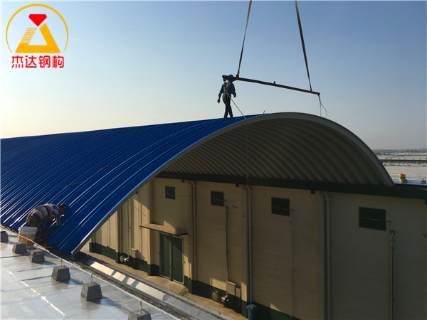 項(xiàng)目中,江蘇杰達(dá)鋼結(jié)構(gòu)工程有限公司負(fù)責(zé)拱形屋頂波紋鋼屋蓋的安裝勞務(wù),確保結(jié)構(gòu)的質(zhì)量與施工安全。采用高強(qiáng)度材料和精確的焊接工藝,為屋頂提供了堅(jiān)固的支撐。