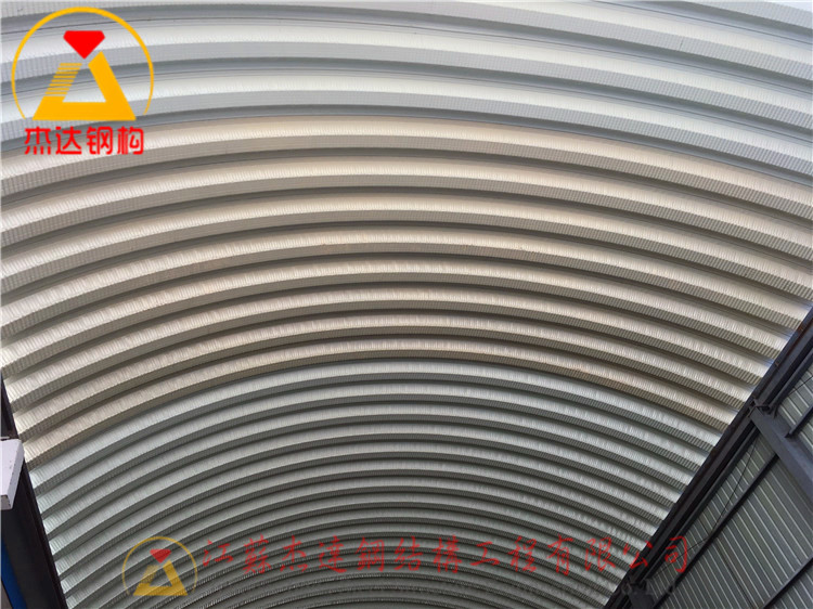 張莊糧食儲(chǔ)備庫(kù)部分拱形屋頂出現(xiàn)破損,影響了倉(cāng)庫(kù)的正常使用。作為江蘇專業(yè)的拱形屋頂鋼結(jié)構(gòu)施工單位,江蘇杰達(dá)鋼結(jié)構(gòu)工程有限公司迅速響應(yīng),在一天內(nèi)完成了彩鋼拱形屋頂?shù)姆鹿ぷ?。此次翻新不僅修復(fù)了破損部分,同時(shí)提升了屋頂?shù)恼w耐久性和美觀度。