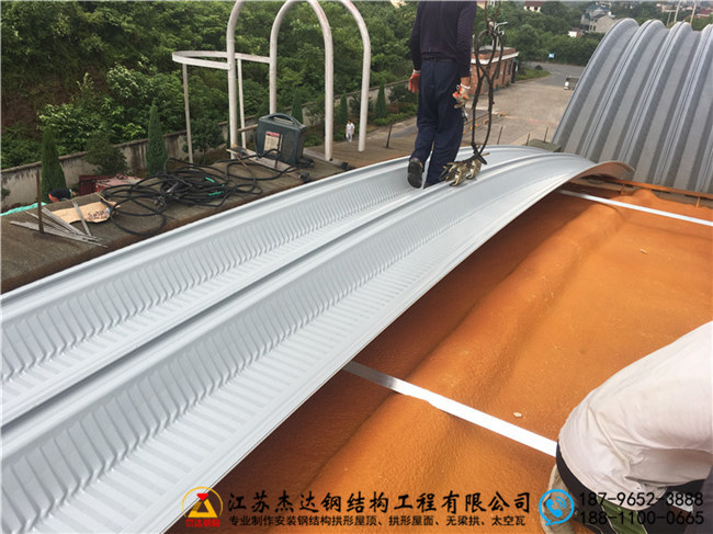 設(shè)備出板環(huán)節(jié)是施工中的重要環(huán)節(jié),所有部件均經(jīng)過嚴(yán)格檢測(cè)。組裝過程采用科學(xué)流程,保證瓦片精準(zhǔn)拼接,提升整體結(jié)構(gòu)穩(wěn)定性。無梁拱設(shè)計(jì)提升了屋頂?shù)某兄啬芰?,且減輕自重,利于長(zhǎng)期使用。